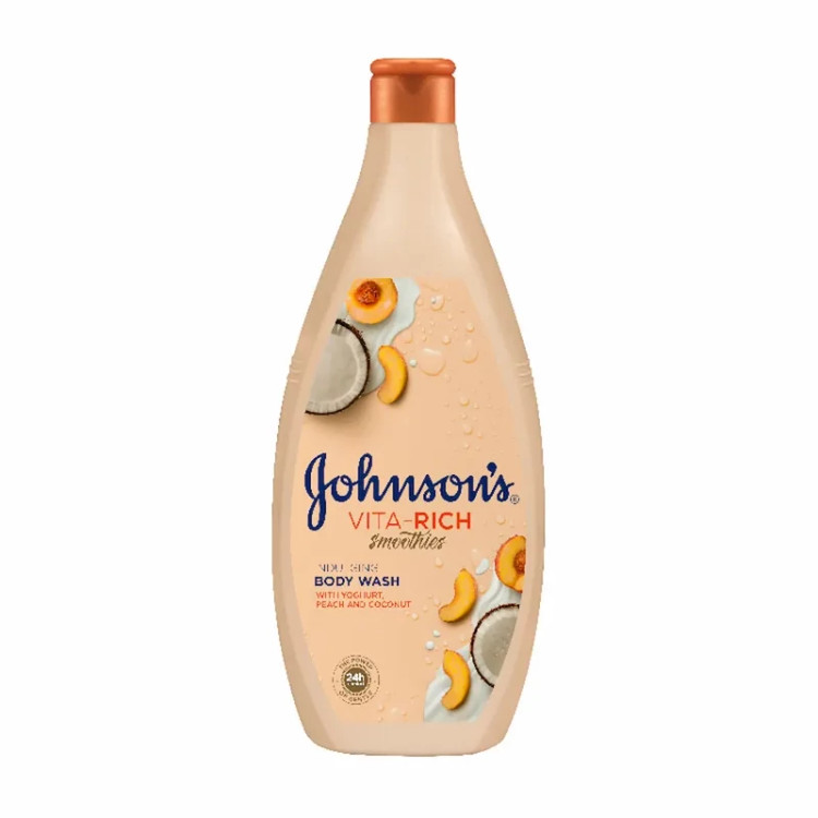 شامپو بدن حاوی عصاره نارگیل و هلو برند جانسون Johnson's با فرمولاسیون غنی شده نارگیل ضمن اینکه پوست بدن را با ملایمت و بدون آسیب به بافت آن تمیز و پاک می کند ،