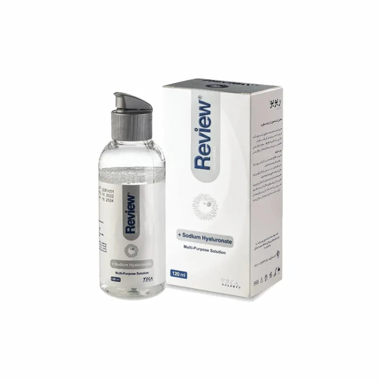 محلول شستشو لنز چند منظوره برند ریویو(120 میل) | REVIEW با هدف شستشو و پاکسازی لنز های تماسی و هم چنین، ضدعفونی و رطوبت رسانی به آن ها با بهره گیری از سدیم هیالورونات طراحی شده است.