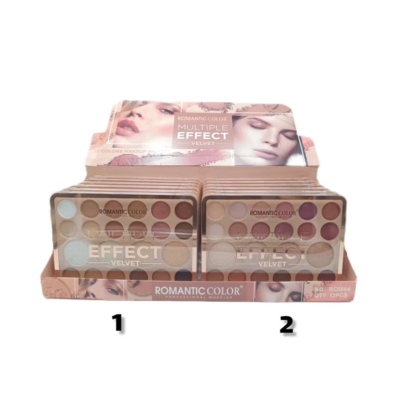 پالت سایه 22 رنگ مدل EFFECT برند ROMANTIC COLOR با بافت سبک و پوشش یکدست جلوه زیبا به آرایش چشم می بخشد.