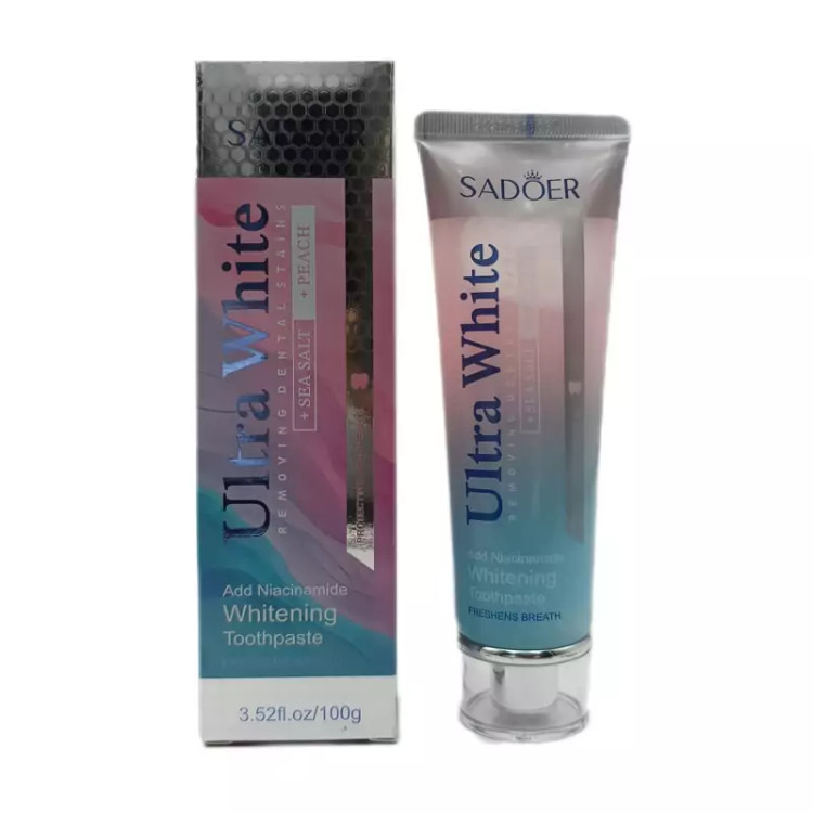 خمیر دندان SEA SALT+PEACH برند سادور | SADOER دندان های شما را سفید می کند و تارتار و پلاک را از بین می برد ، بنابراین می توانید زیباتر و درخشان تر لبخند بزنید.