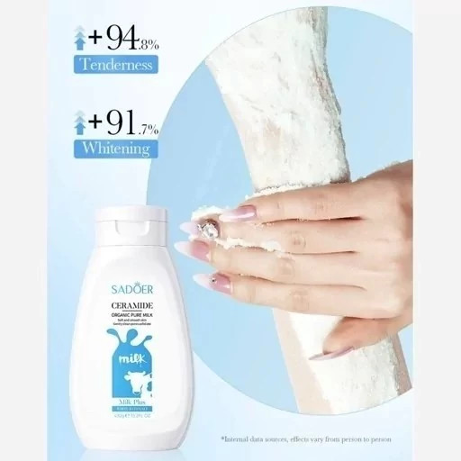 نمک بدن شیر گاو 430 گرم SADOER حجم 430 گرم زبری و تیرگی پوست را بهبود میبخشد از بین برنده آلودگی سطح پوست نرم و لطف کنندگی پوست