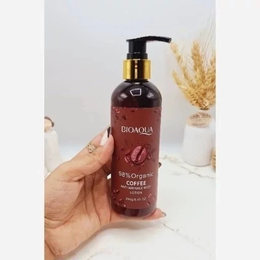 لوسیون بدن قهوه بیوآکوا ☕️ لوسیون بدن قهوه ارگانیک 98 درصد فوق العاده خوش عطر آبرسان نرم کننده و لطیف کننده پوست بدن روشن کننده حجم بالا 260گرم