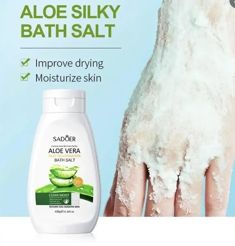 نمک بدن آلوئه ورا سادور برای روشن شدن پوست، رفع پوست مرغی، پاکسازی منافذ پوست، نرم و لطیف و صیقلی شدن پوست می شود.