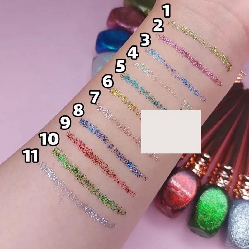 خط چشم گلیتری از جمله موارد پر استفاده برای استایل های رنگی فصل بهار و تابستان می باشد.این پک خط چشم شامل 11 رنگ پرطرفدار و کاربردی می باشد که می توانید با هر رنگ میکاپ و لباس ست کنید.
