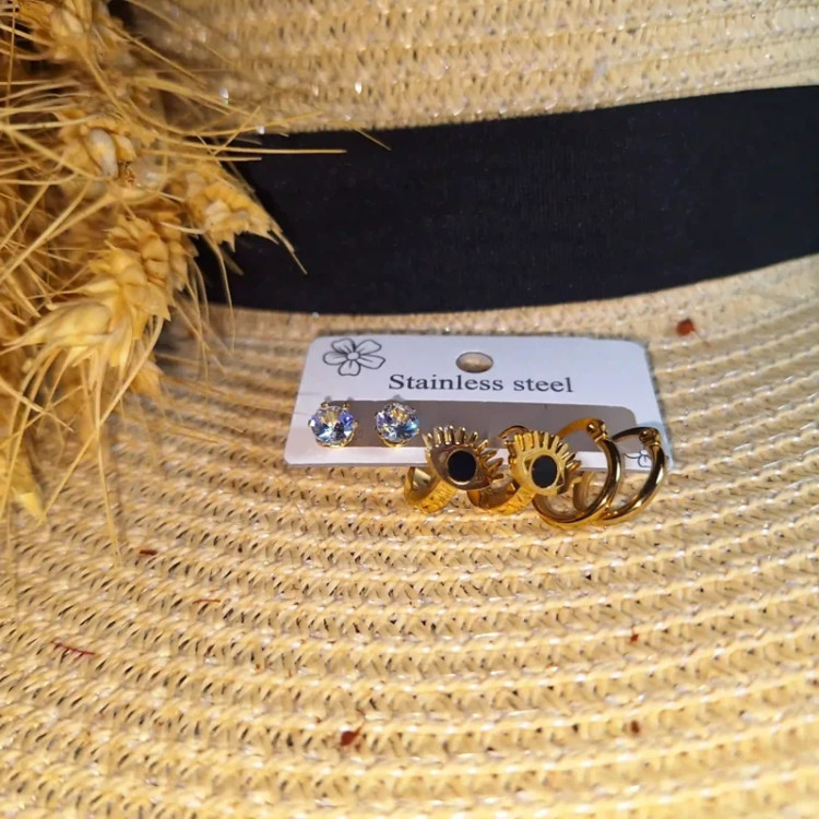 مدل جدیدی که اضافه کردیم نیز استیل طلایی رنگ ثابت است که شامل سه جفت گوشواره فانتزی و جذاب می باشد. همراه ما باشید تا با این پک جدید آشنا شویم.