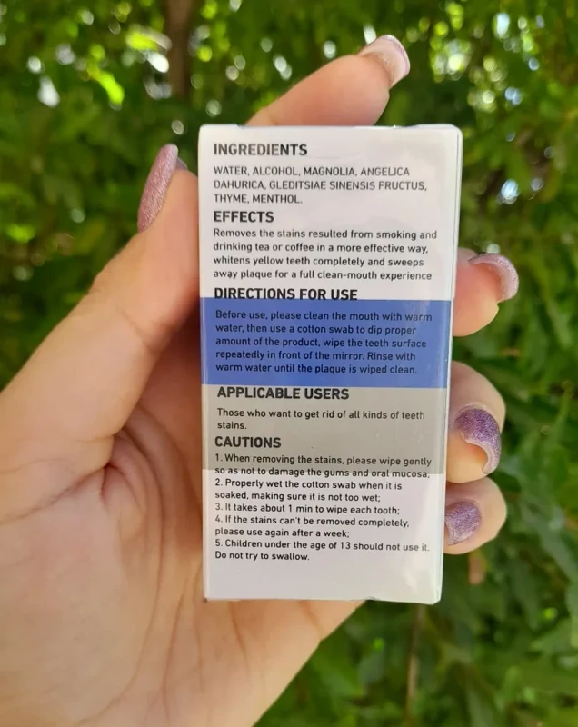 بعد از مصرف نوشیدنی های رنگدار یا غذا های لکهزا، دندان ها را با آب شستشو دهید و سپس از قطره استفاده کنید.