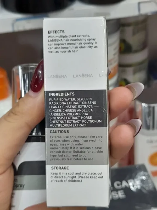 فرمول این محصول بر پایه گیاهان تقویت کننده و ترکیبات انرژی بخش پوست سر طراحی شده است. ترکیب مواد گیاهی و عصاره های طبیعی باعث شده اسپری لانبنا برای استفاده طولانی مدت مناسب و ایمن باشد.نقش این ترکیبات: