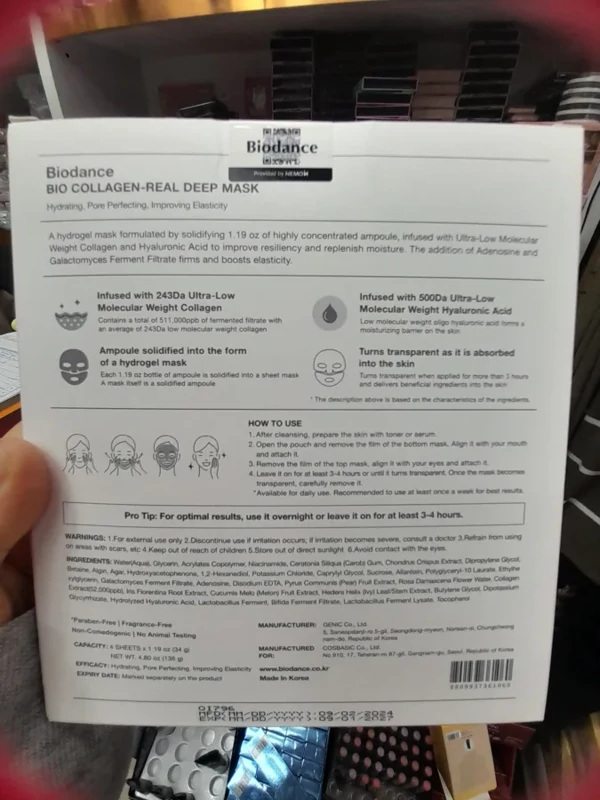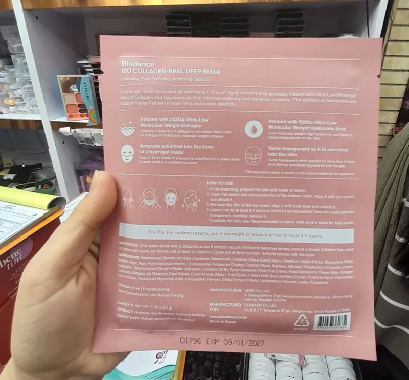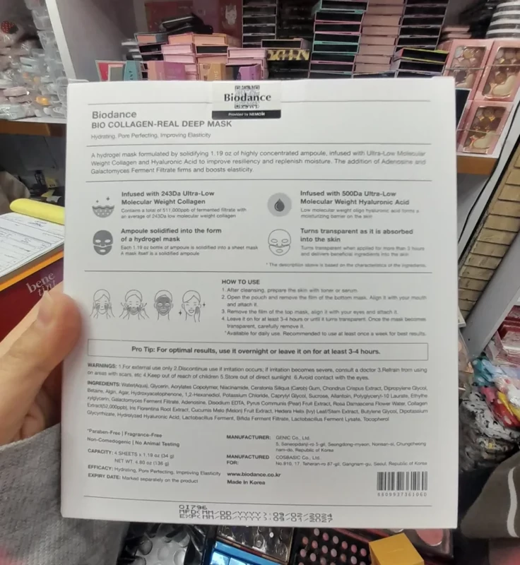 نحوه استفاده از ماسک کلاژن بایودنس کره ای اورجینال