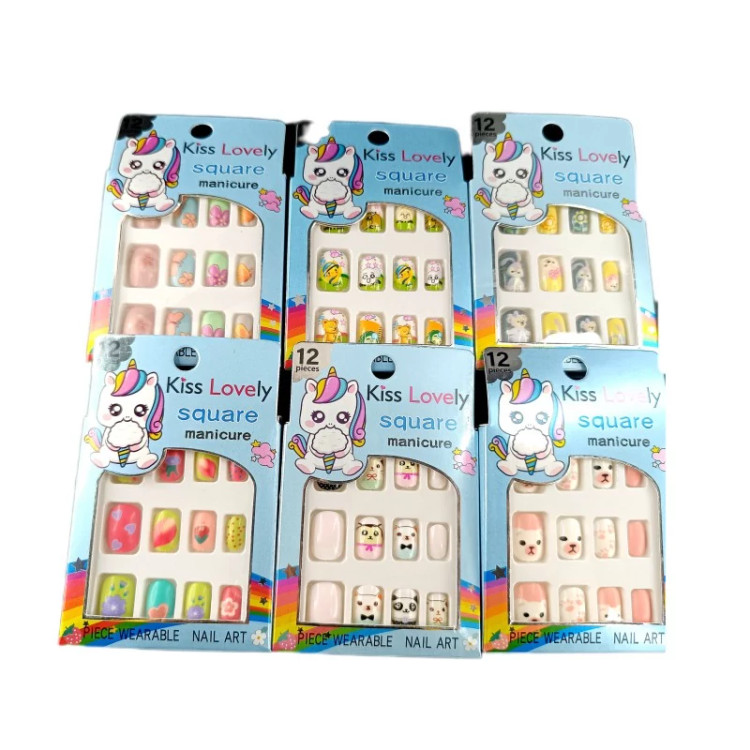 برای کودکان سنین ۳ تا ۱۰ سال با استفاده از چسب ژلهای که معمولا در بستهی ناخن مصنوعی پشت خود ناخنها وجود دارد و بدون نیاز به هیچ نوع چسب ناخن است، استفاده کنید و از این بابت نگران نباشید.