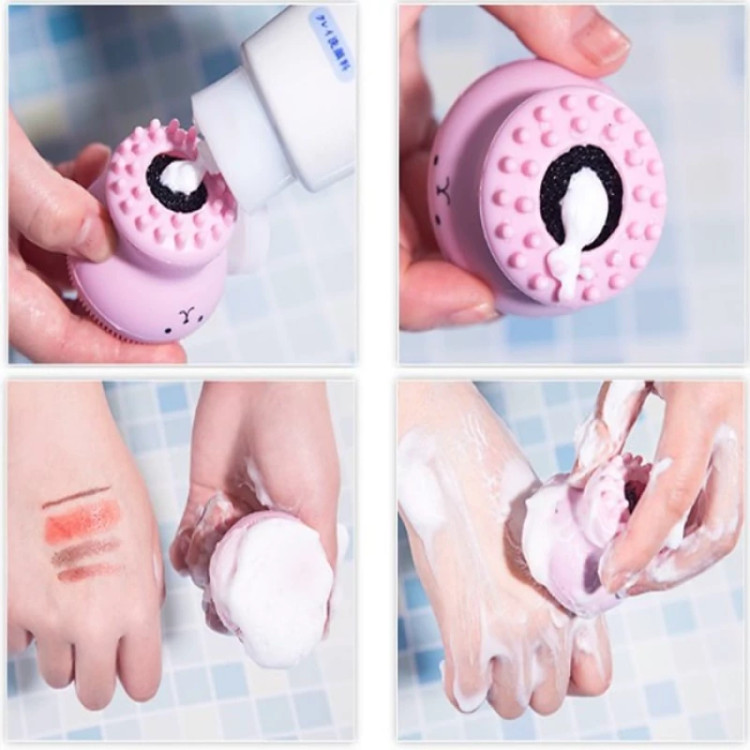 ابتدا فیس براش دستی مدل هشت پا را مرطوب کنید و سپس مقداری از شوینده را روی اسفنج داخل مخزن براش بریزید و سپس مقداری با دست فشار دهید تا کامل کف کند. سپس از سری سیلیکونی کوتاه تر با حرکت دورانی شروع به شستن پوست صورت کنید و در آخر هم از سر سیلیکونی بلند تر صورت را ماساژ دهید. در پایان کار براش و اسفنج داخل را بشویید.