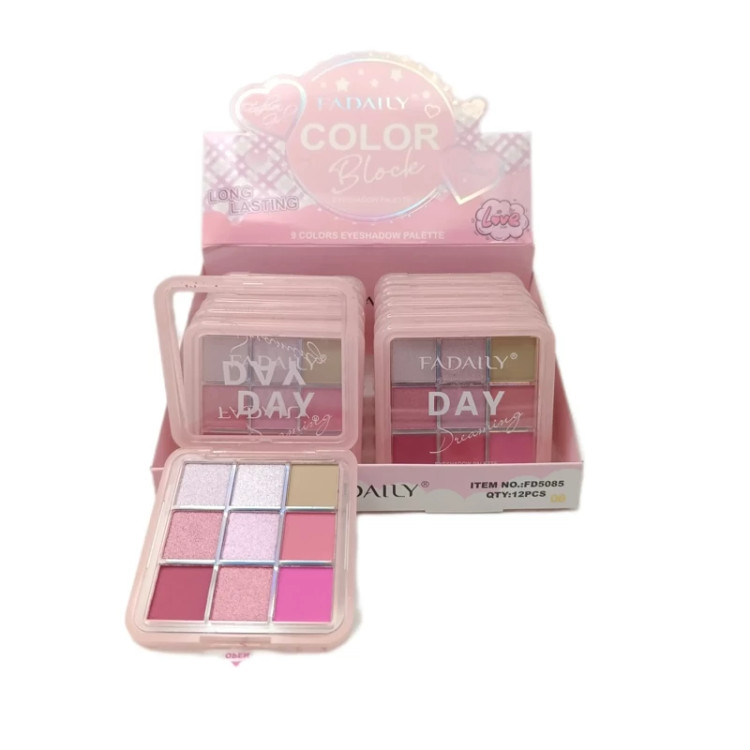 پالت سایه رنگ صورتی برند فادالی | FADAILY دارای 9 رنگ و اکلیل بالاست، رنگ های روشن تا رنگ های تیره و دودی و انواع رنگ بندی ها را شامل می شود.