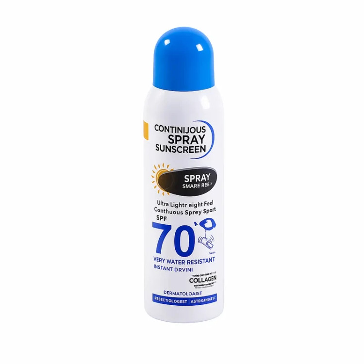اسپری ضدآفتاب +SPF70 محافظت بسیار بالایی در برابر UVA + UVB دارد ، حاوی کلاژن و مولتی ویتامین می باشد که برای جوان سازی پوست بسیار موثر است.