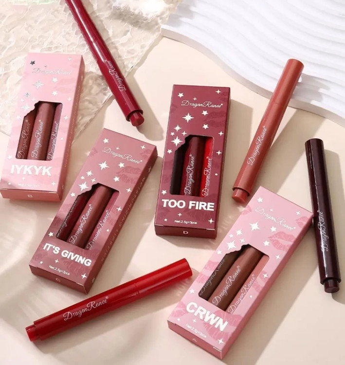 پک رژلب سه تایی مدل خودکاری دراگون رانی Dragon Ranee، تا ۱۲ ساعت بر روی لب ماندگاری و دوام دارد.