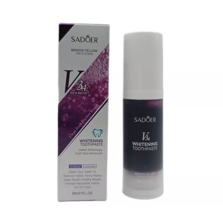 خمیر دندان(28 میل) مدل V34 برند سادور | SADOER بهویژه برای افرادی طراحی شده که به دنبال نتایج سریع و بدون دردسر در اصلاح رنگ دندانهای خود هستند.